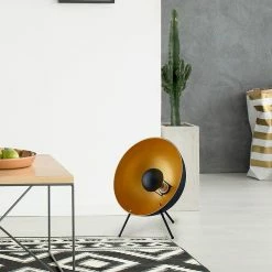 Budget đ Altobuy STODY – Lampe Ă Poser Pied et Abat-jour en MĂ©tal Noir DĂ©tails DorĂ©s đ