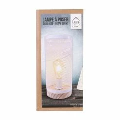 Vente flash đ The Home Deco Light Lampe cylindrique mĂ©tal grillagĂ© socle en bois blanc âš