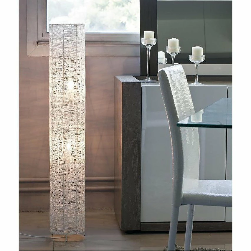 Lampadaire Cylindrique en Rotin Blanc de la gamme Finley.