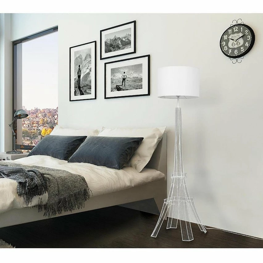 De gros 🛒 ATHM Design Lampadaire EIFFEL Blanc – abat jour tissu pieds Metal ✔️