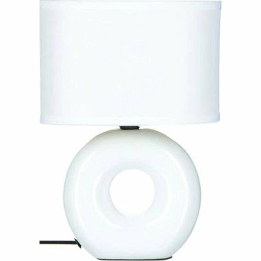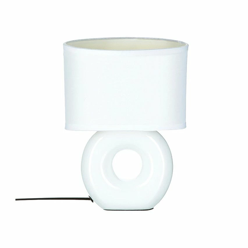 Lampe à poser Blanche pied en céramique et abat-jour en coton H 25 cm —