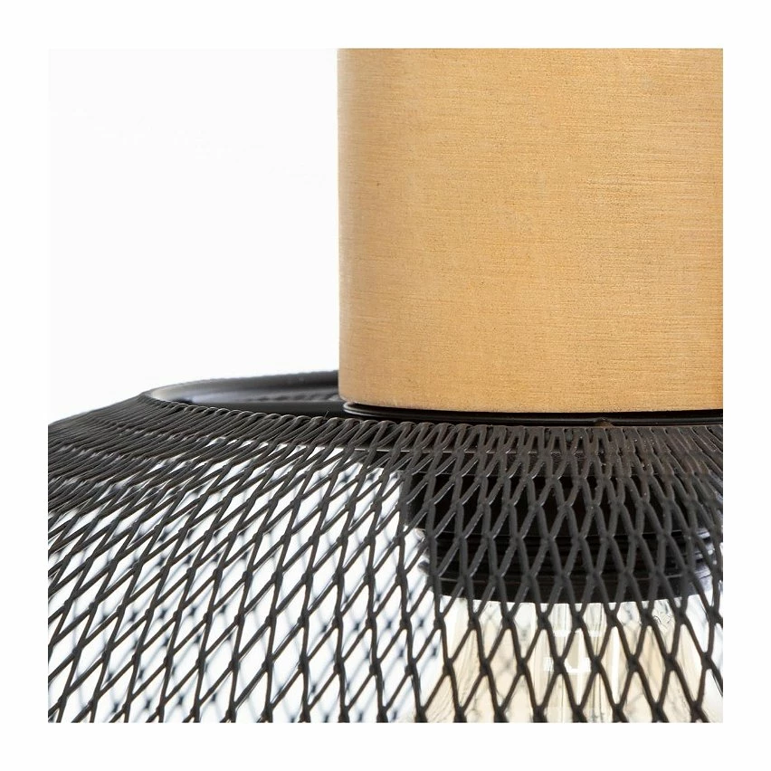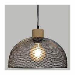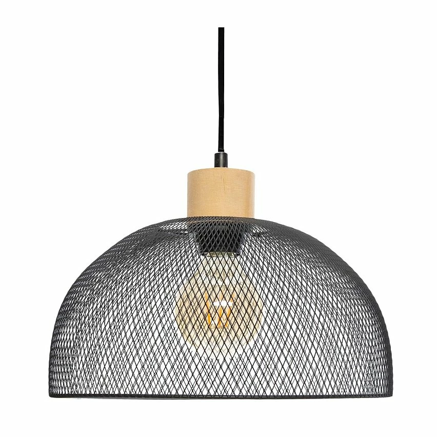 Luminaire Suspension en Métal Noir et Bois D 30 cm —