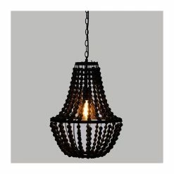 Luminaire Suspension Perles noires en Bois D 38.5 cm —