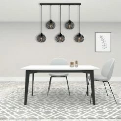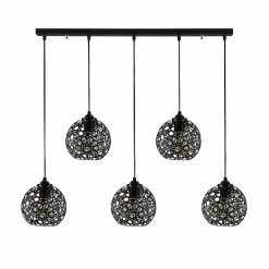 Cette lampe suspendue est la solution parfaite pour éclairer votre maison ou votre bureau avec style. Grùce à sa conception, il est idéal pour les espaces de vie et de repos. Kit de montage inclus, facile à nettoyer, facile à assembler. Colore: Nero | Dimensione Prodotto: L100xP17xA119 cm | Materiale: Metallo | Potenza: 5 x E27, Max 100W | Peso Prodotto: 2 Kg | Lampadina: Non Inclusa| Peso Imballo: 2,4 Kg | Numero Scatole: 1 | Dimensioni Imballo: 80x25x25 cm