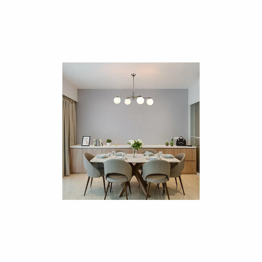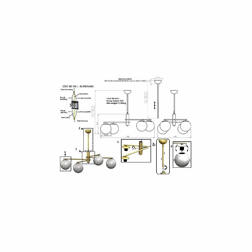 Cette lampe suspendue est la solution parfaite pour éclairer votre maison ou votre bureau avec style. Grâce à sa conception, il est idéal pour les espaces de vie et de repos. Kit de montage inclus, facile à nettoyer, facile à assembler. Couleur: Or | Dimensions: 42x84x75 cm | Matériel: Métal, Verre | Puissance: 4 x E27, Max 40W | Poids du produit: 2,66 Kg | Ampoule: Non incluse| Poids de l’imballage: 3,57 Kg | Nombres de boîtes: 1 | Dimensions de boîtes: 46x46x20 cm