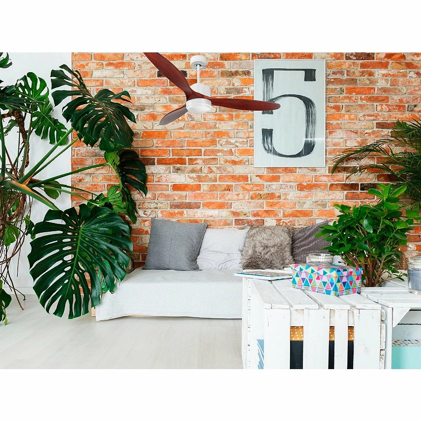Les pales aérodynamiques en ABS confèrent au ventilateur une grande légèreté, et ont été traitées à la main pour être totalement équilibrées et ne pas produire de vibrations. Ce modèle à 3 Pales marron a un diamètre de 166 cm et atteint une grande vitesse.
