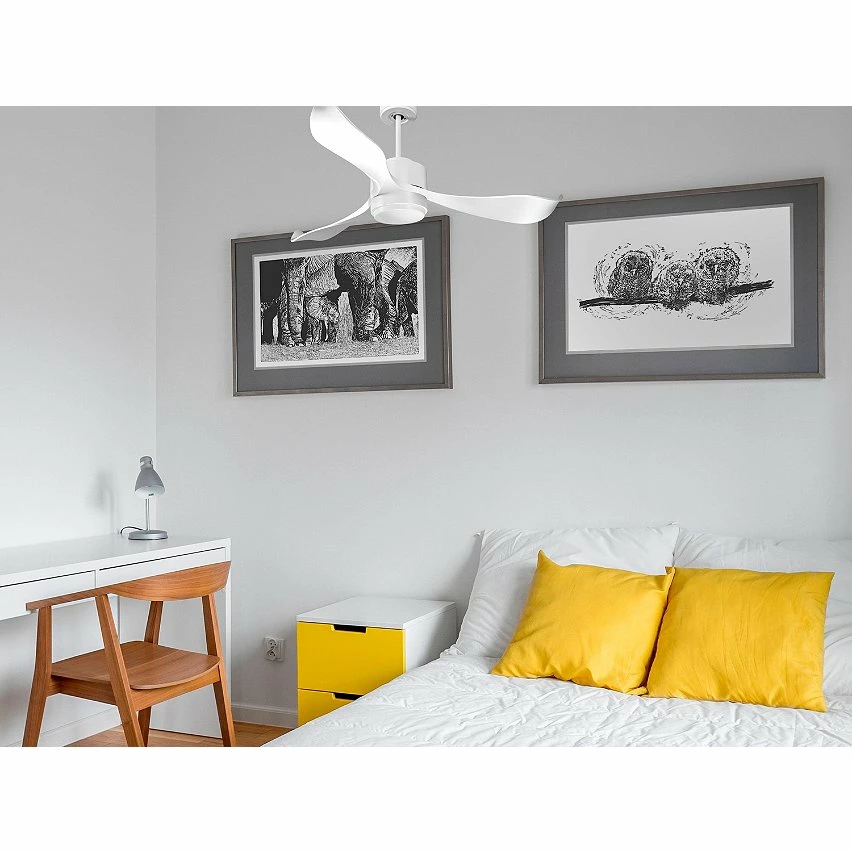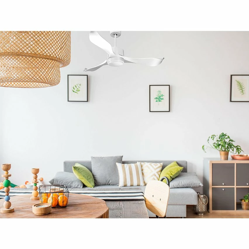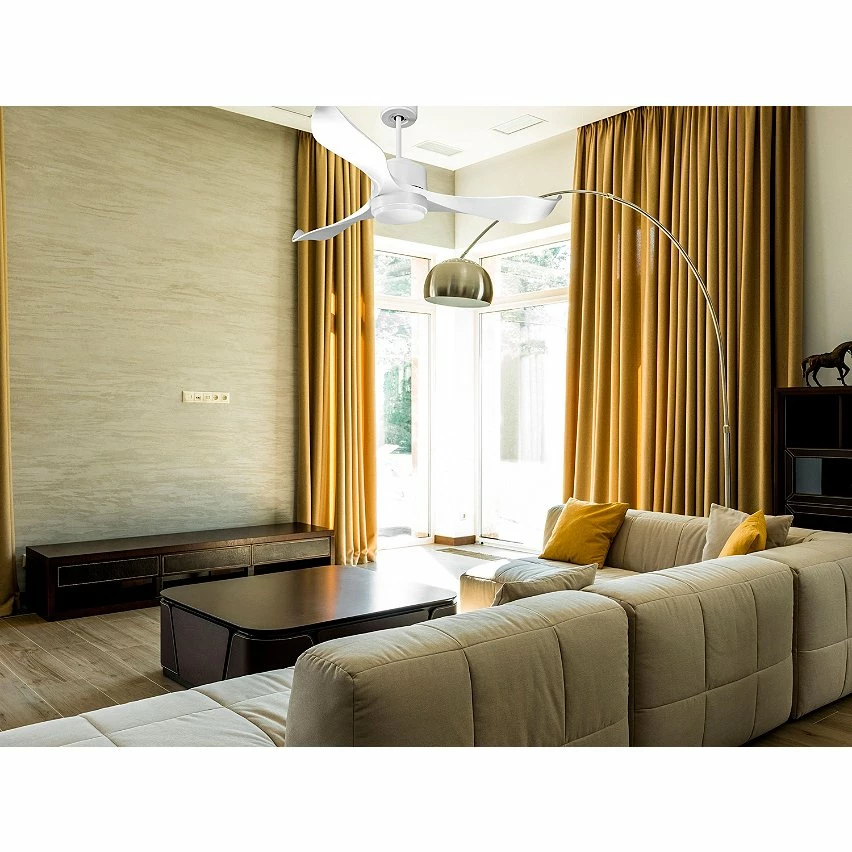 Les pales aérodynamiques en ABS confèrent au ventilateur une grande légèreté, et ont été traitées à la main pour être totalement équilibrées et ne pas produire de vibrations. Ce modèle à 3 Pales de couleur blanc a un diamètre de 132 cm et atteint une grande vitesse.