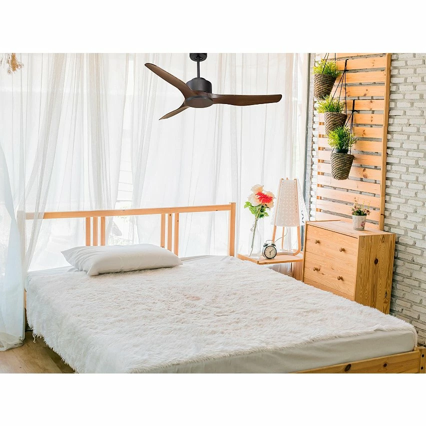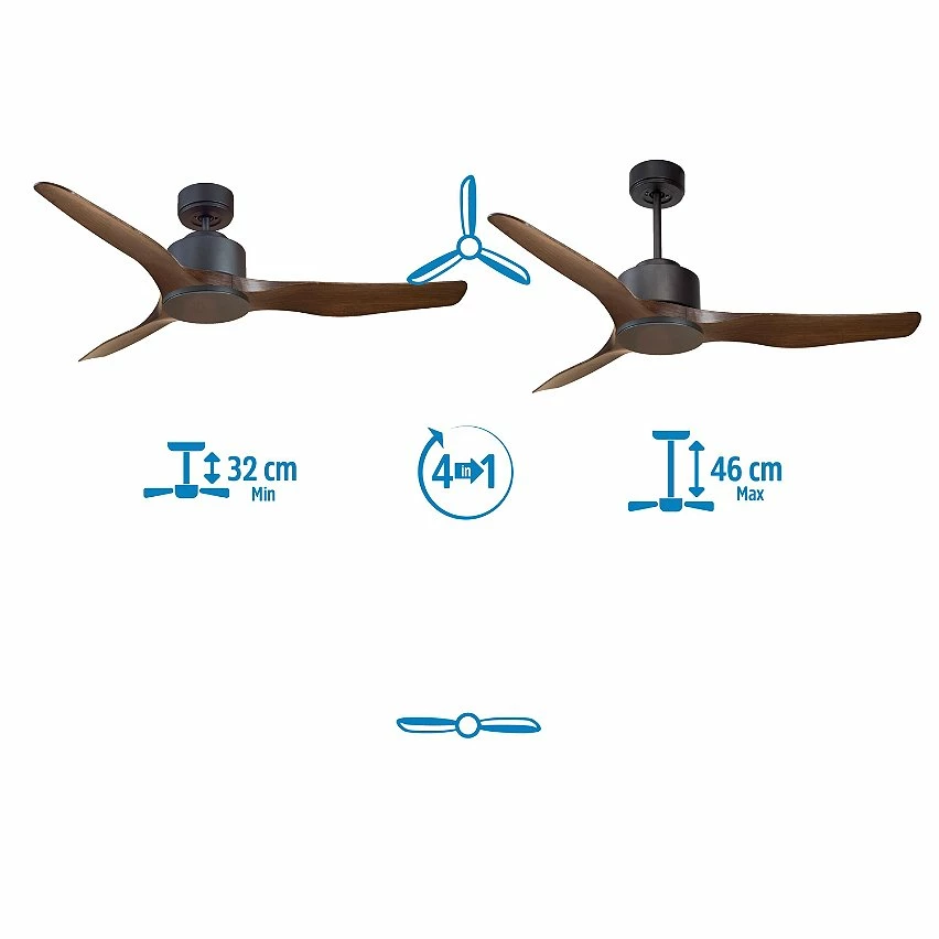 Le moteur Ă courant continu noir DC1 permet des installations dans les plafonds jusqu’Ă 27Âș d’inclinaison et est servi avec deux tiges pour ĂȘtre installĂ© Ă la hauteur appropriĂ©e (13,5 cm et 25 cm). Il est parfait pour 2 ou 3 pales, car il dispose d’une fonction auto Ă©quilibrĂ©e. Il prend Ă©galement en charge le kit de lumiĂšre. Ce modĂšle est rĂ©versible, de sorte qu’en hiver, vous pouvez inverser ses pales pour que son mouvement dĂ©place l’air chaud vers le bas, agissant en complĂ©ment de votre systĂšme de chauffage et favorisant une consommation optimisĂ©e. Il comprend Ă©galement un thermostat Ă sa base, de sorte que vous pouvez le programmer pour que le ventilateur fonctionne en fonction de la tempĂ©rature ambiante.