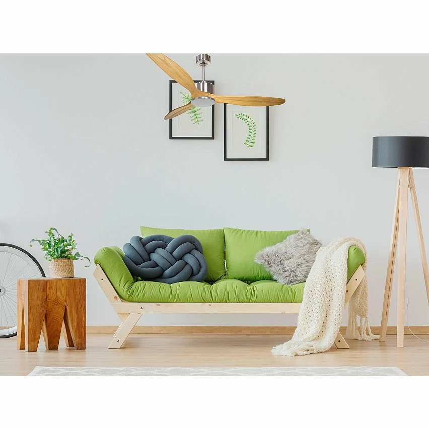 Les pales aĂ©rodynamiques en ABS confĂšrent au ventilateur une grande lĂ©gĂšretĂ©, et ont Ă©tĂ© traitĂ©es Ă la main pour ĂȘtre totalement Ă©quilibrĂ©es et ne pas produire de vibrations. Ce modĂšle fini en bois clair a un diamĂštre de 166 cm et atteint une grande vitesse.