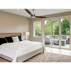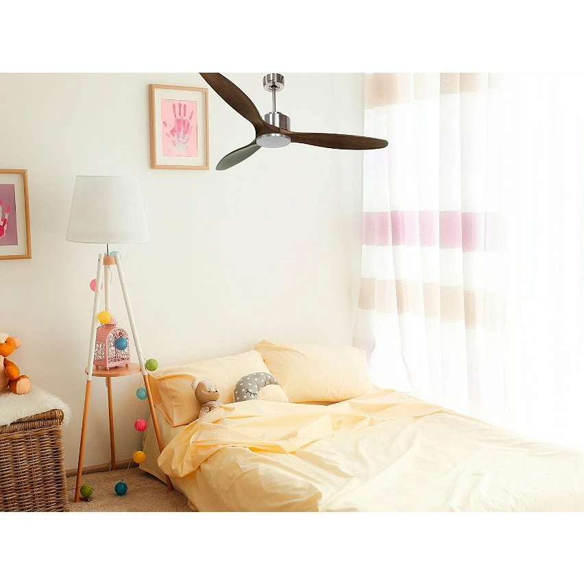 Les pales aĂ©rodynamiques en bois confĂšrent au ventilateur une grande lĂ©gĂšretĂ©, et ont Ă©tĂ© traitĂ©es Ă la main pour ĂȘtre totalement Ă©quilibrĂ©es et ne pas produire de vibrations. Ce modĂšle Ă 3 Pales de couleur marron a un diamĂštre de 166 cm et atteint une grande vitesse.