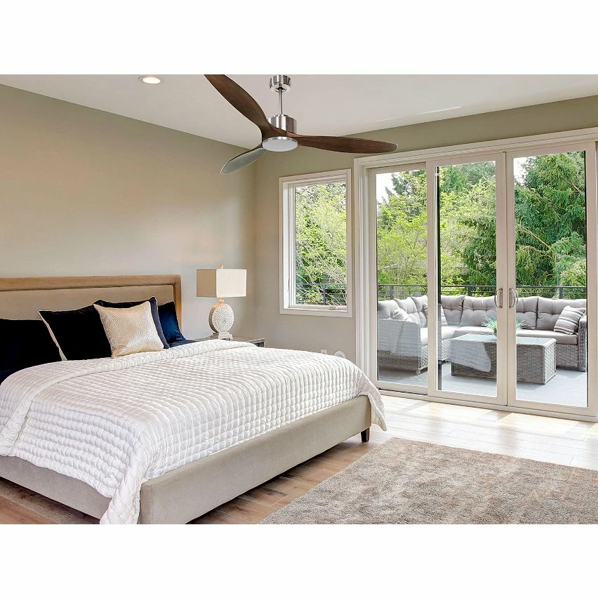 Le moteur Ă courant continu argentĂ© DC3 permet des installations dans les plafonds jusqu’Ă 27Âș d’inclinaison et est servi avec deux tiges pour ĂȘtre installĂ© Ă la hauteur appropriĂ©e (13,5 cm et 25 cm). Il est parfait pour 2 ou 3 pales, car il dispose d’une fonction auto Ă©quilibrĂ©e. Il prend Ă©galement en charge le kit de lumiĂšre. Ce modĂšle est rĂ©versible, de sorte qu’en hiver, vous pouvez inverser ses pales pour que son mouvement dĂ©place l’air chaud vers le bas, agissant en complĂ©ment de votre systĂšme de chauffage et favorisant une consommation optimisĂ©e. Il comprend Ă©galement un thermostat Ă sa base, de sorte que vous pouvez le programmer pour que le ventilateur fonctionne en fonction de la tempĂ©rature ambiante.