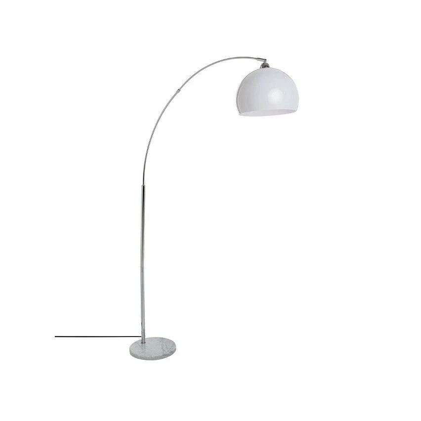 Lampadaire abat-jour balnbc en forme de boule. Hauteur 179 cm. Fonctionne avec secteur et une ampoule E27 de puissance 20W maximum.