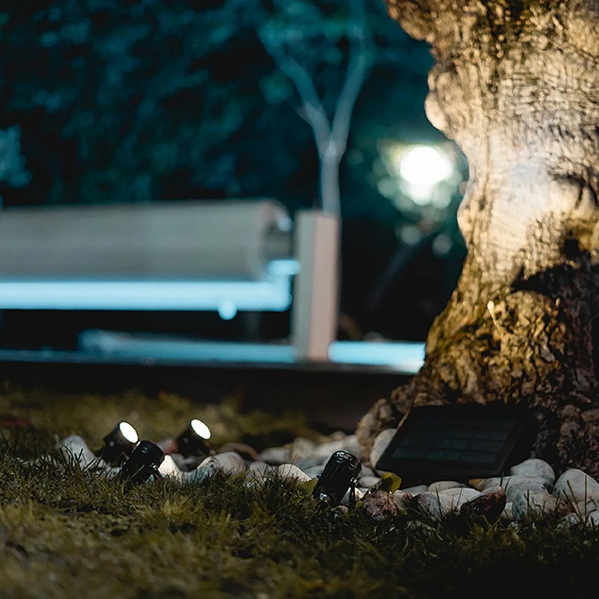 - Panneau solaire déporté rattaché aux lampes