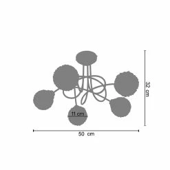 Un lustre moderne et contemporain, Ă©quipĂ© de cinq bras tube mĂ©tal et de trois globes en verre, dĂ©corĂ©s en mat, qui permettent une lumiĂšre douce et uniformĂ©ment rĂ©partie, donnant Ă votre chambre, salon, salle Ă manger ou mĂȘme votre bureau une touche de modernitĂ©, de confort et surtout toute la lumiĂšre dont vous avez besoin. Un produit fabriquĂ© au Portugal, totalement Ă©co-durable, utilisant des matĂ©riaux 100% recyclables, fer et verre. – Lustre ACTUELLE multi bras mĂ©tal aluminium – Abat-jour verre couleur transparent forme globe – Douille G9 x5 lumiĂšre – Ampoule non inclus conseillĂ©: LED 7W (halogĂšne, maxi. 40W) type capsule JC BI-PIN – Projection lumineuse ambiant – Connexion rĂ©seau Ă©lectrique: boĂźtier de connexion isodom – Interrupteur non inclus – Style design – Classe de Protection I – Indice de protection: IP20 – Dimmable , dimmer non inclus – Tension de fonctionnement : 230V – Tension d’alimentation : 230V – Dimension abat-jour: Hauteur 11cm x Longueur 11cm x Largeur 11cm – Dimension global: Hauteur 32cm x Longueur 50cm x Largeur 50cm – Poids net du produit: 1,6Kg